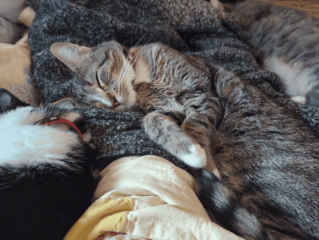 My wife and I own four cats. Here is a picture of three of them.